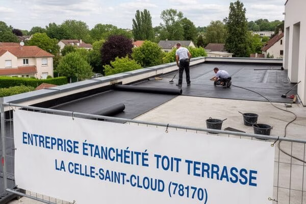Akadia prend en charge l’installation de l’étanchéité de votre toit-terrasse neuf ou la rénovation d’étanchéité existante. Nous utilisons le bitume bicouche, les membranes en PVC ou EPDM, ou les résines liquides. Le choix du matériau dépend du type de toiture et des contraintes locales de La Celle-Saint-Cloud.